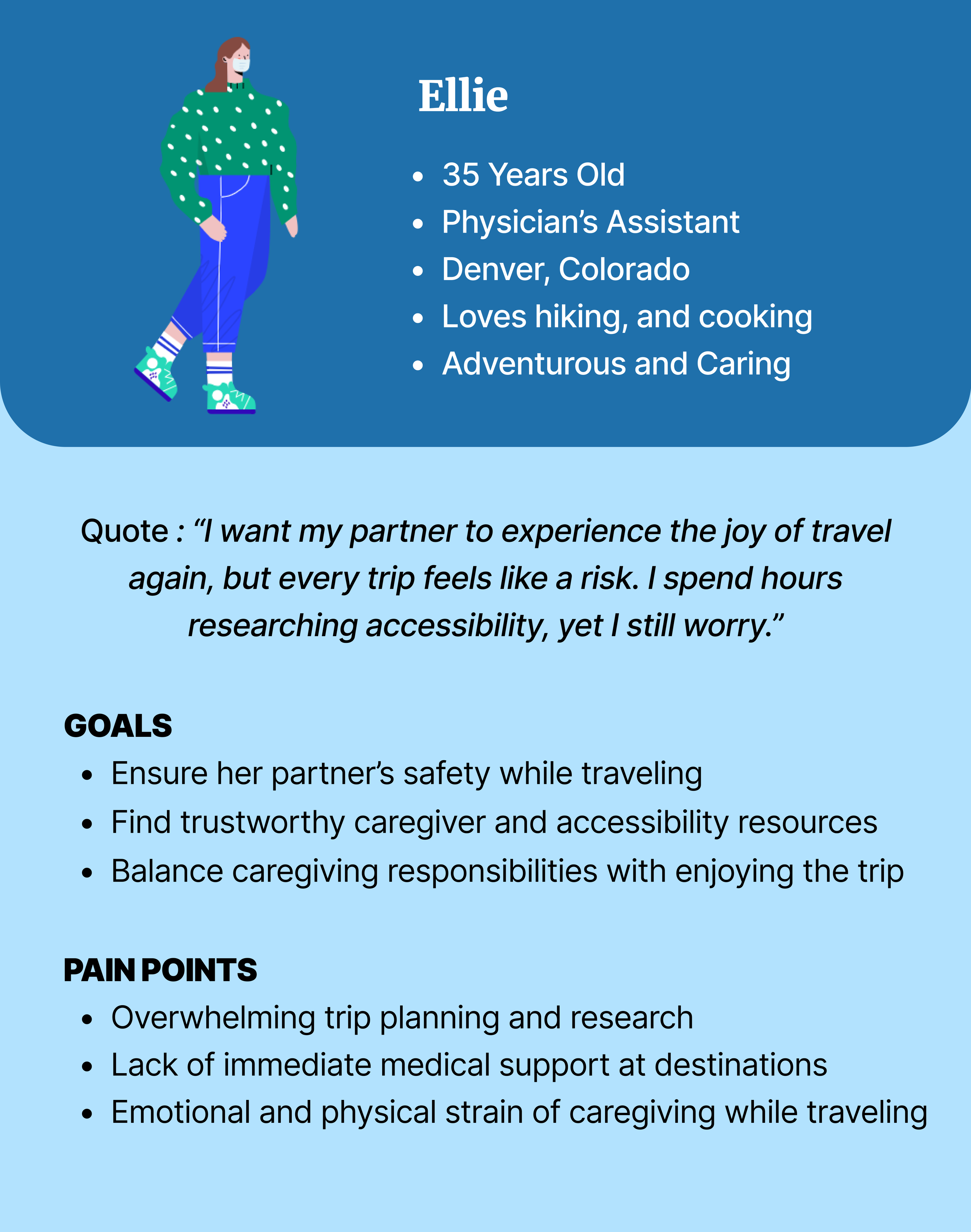 Traveling should be about discovery and joy, but for people with disabilities and their caregivers, it often becomes a source of stress and uncertainty. Inspired by my father's struggle to travel while undergoing dialysis, I set out to understand the core challenges faced by those with medical needs and limited mobility.