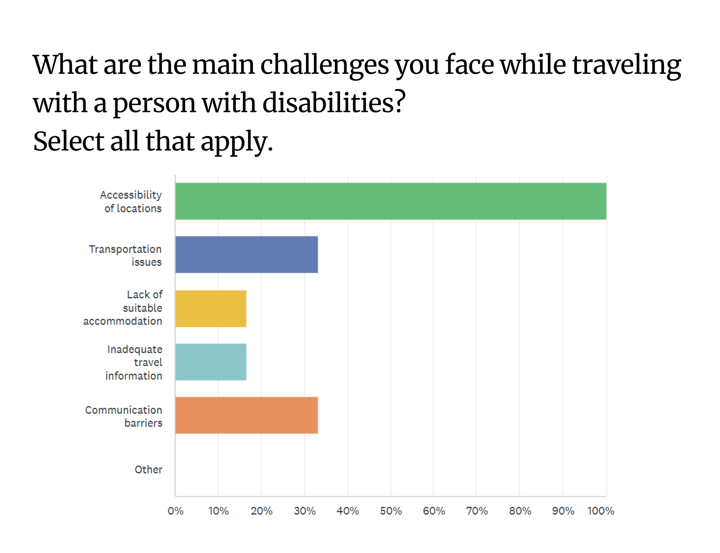 Travelers with disabilities often face barriers such as limited accessibility information, lack of caregiver support, and safety concerns.